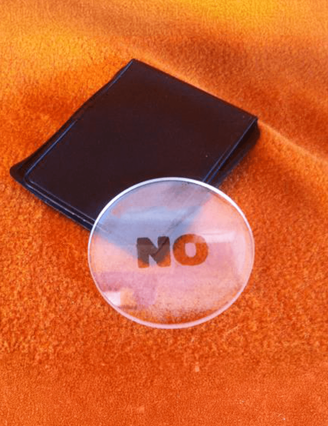 If you are familiar with the Ghost Glass or Spirit Glass, you know that breathing on it, causes a word or symbol to appear on the otherwise clear glass disk. Well, this is an unusual version in that one side will produce the word YES and the other side will produce the word NO.