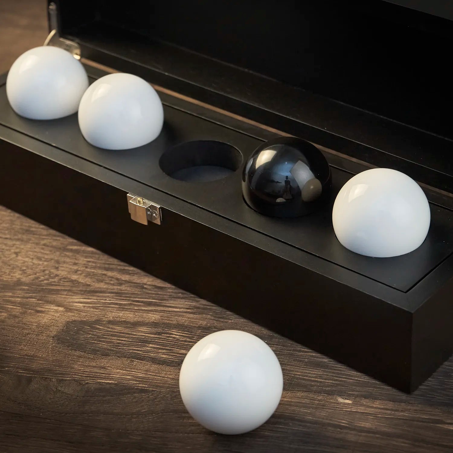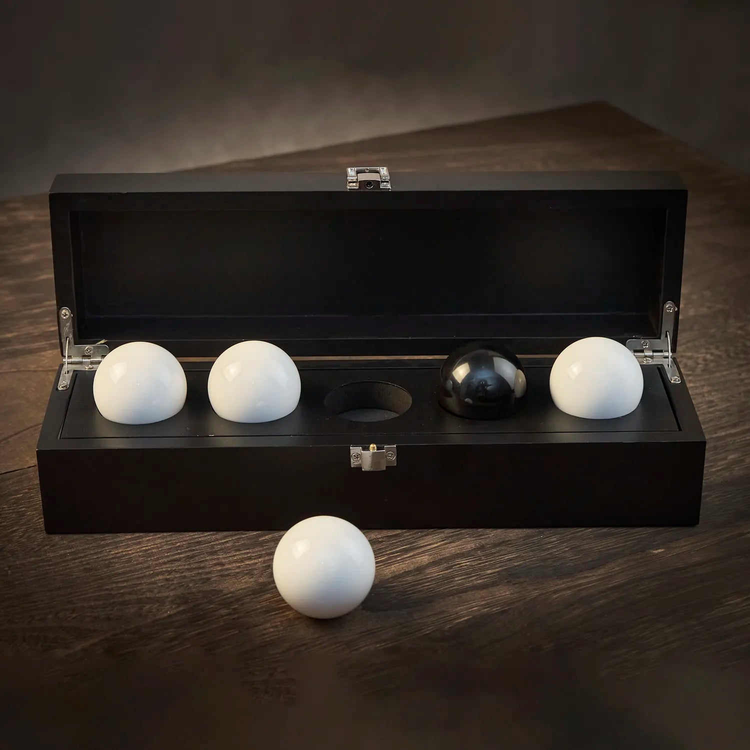 Sleuth Ball comes with five resin balls that look and feel exactly like snooker or pool balls. The spectator will never notice the difference in size or weight between the black and white balls. This device eliminates the need for guesswork and fishing by enabling you to detect the liar every time within a maximum range of up to 50 meters. You can stand as far away as possible, place Sleuth Ball on a shelf, or even put on a blindfold. What you do next is entirely up to you; identifying the liar is one strategy. Asking viewers to respond only in their mind will make the situation even more impossible, so choose your presentation carefully. Iarvel Magic aims to provide you with the most reliable product to achieve the maximum impact while allowing you to customize your presentation.