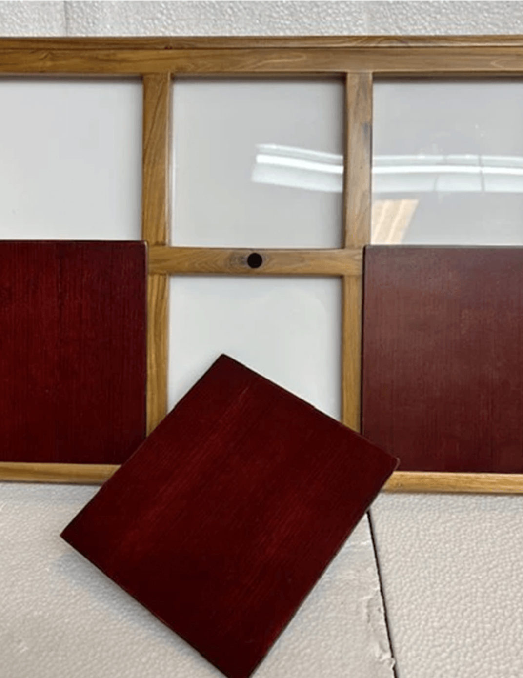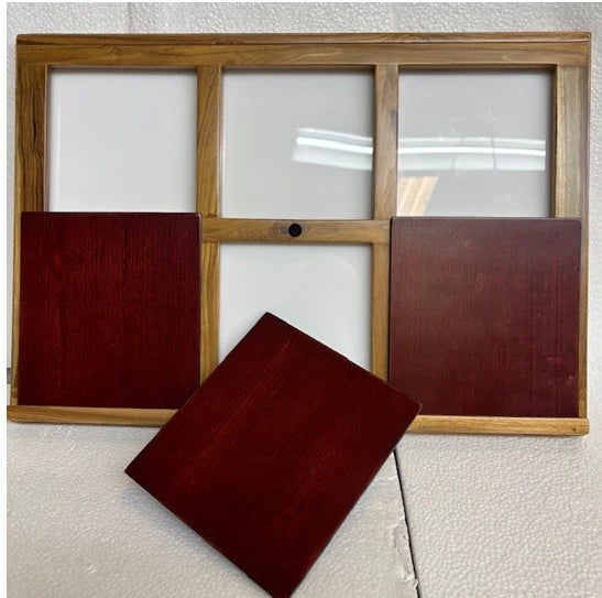 You present a slate divided into six equal squares. In the bottom three squares, you make three predictions and cover them with three rosewood plaques. The spectator offers three thoughts of their choice, which are written in the top three squares. When you uncover your predictions, they match the spectator's selections exactly!